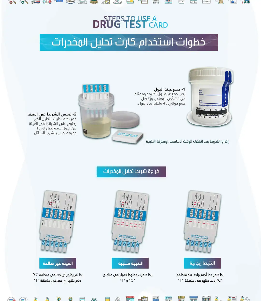 • نوع الاختبار: تحليل البول للكشف عن المخدرات والكحول.